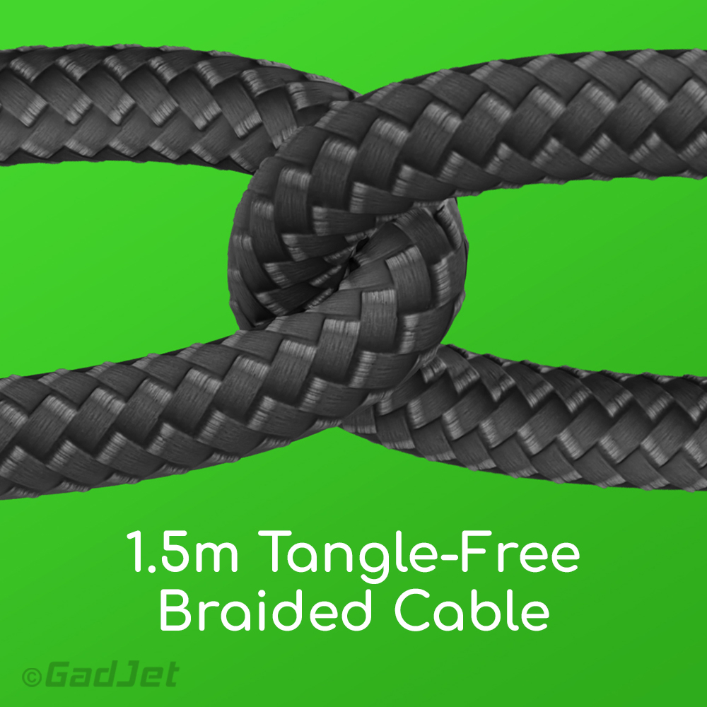 The GadJet PowerMax LED Charge & Sync Cable features a 1.5m braided design that stays tangle-free while offering extra flexibility and long-lasting durability.