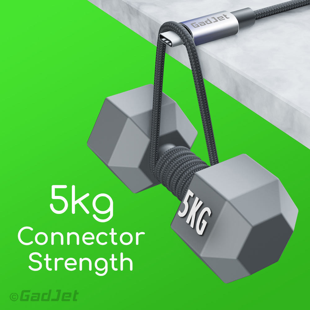 The GadJet PowerMax LED Charge & Sync Cable has connectors that can handle up to 5kg of force, so you never have to worry about wear and tear over time.