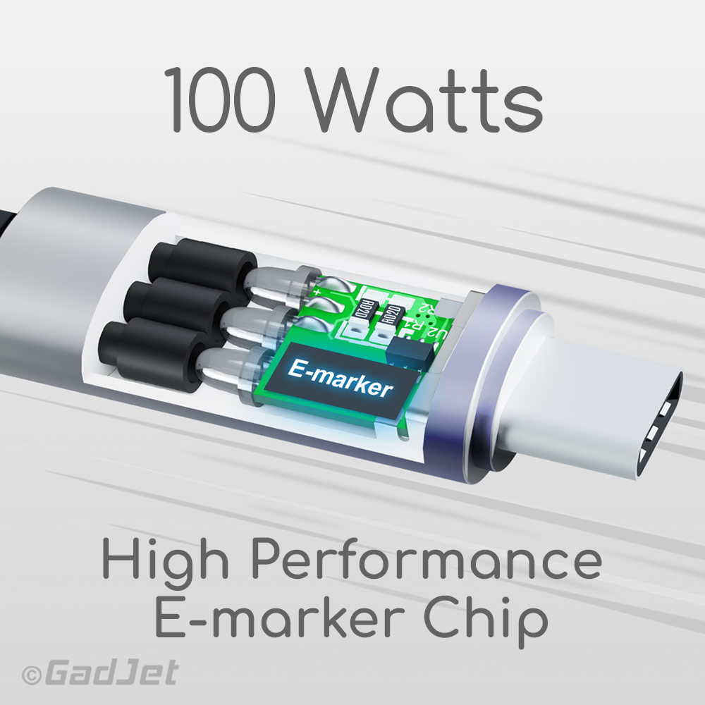 The built-in E-marker chip regulates power flow, ensuring your devices get the right amount of power—up to 100W—without overheating or stressing the battery.