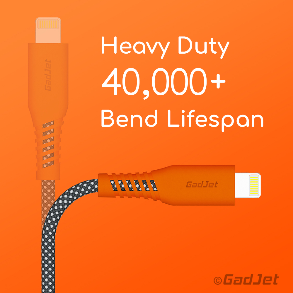 The heavy-duty design of the GadJet Rapid Lightning® Cable, with its 40,000+ bend lifespan, guarantees long-term reliability and peace of mind.