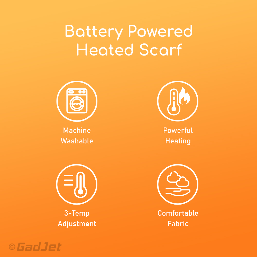 Powered via USB, the Goodiz Heated Scarf ensures consistent heat wherever you go. Just connect it to the included power bank and stay warm all day.