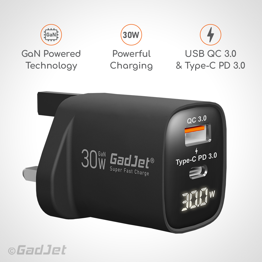 - 30W fast charging with GaN-powered efficiency
