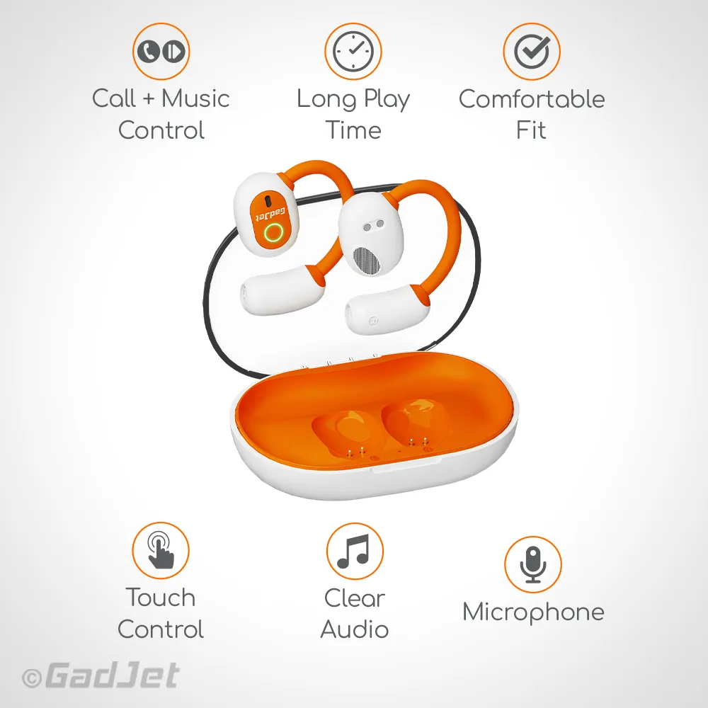 Experience rich bass and clear stereo sound with the GadJet HookFit Wireless Sports Earbuds. Designed with secure ear hooks and a detachable neckband, they offer comfortable wear, touch control, and reliable performance for workouts and daily use.