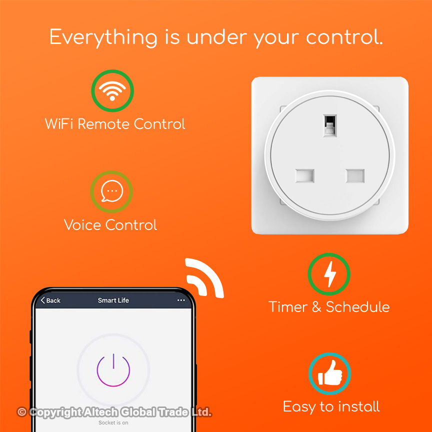 Experience the ultimate convenience and control with the Gadjet Smart WiFi Plug. With its built-in timer and schedule features, you can effortlessly automate your devices to suit your lifestyle. Plus, enjoy hands-free operation through voice control, making it easier than ever to manage your smart home ecosystem.