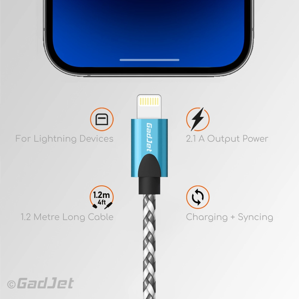 Introducing the GadJet Apple Certified Lightning Cable with 2.1A Output - the perfect solution for fast and efficient charging of your Apple devices. With a braided design, this is a must-have cable.
