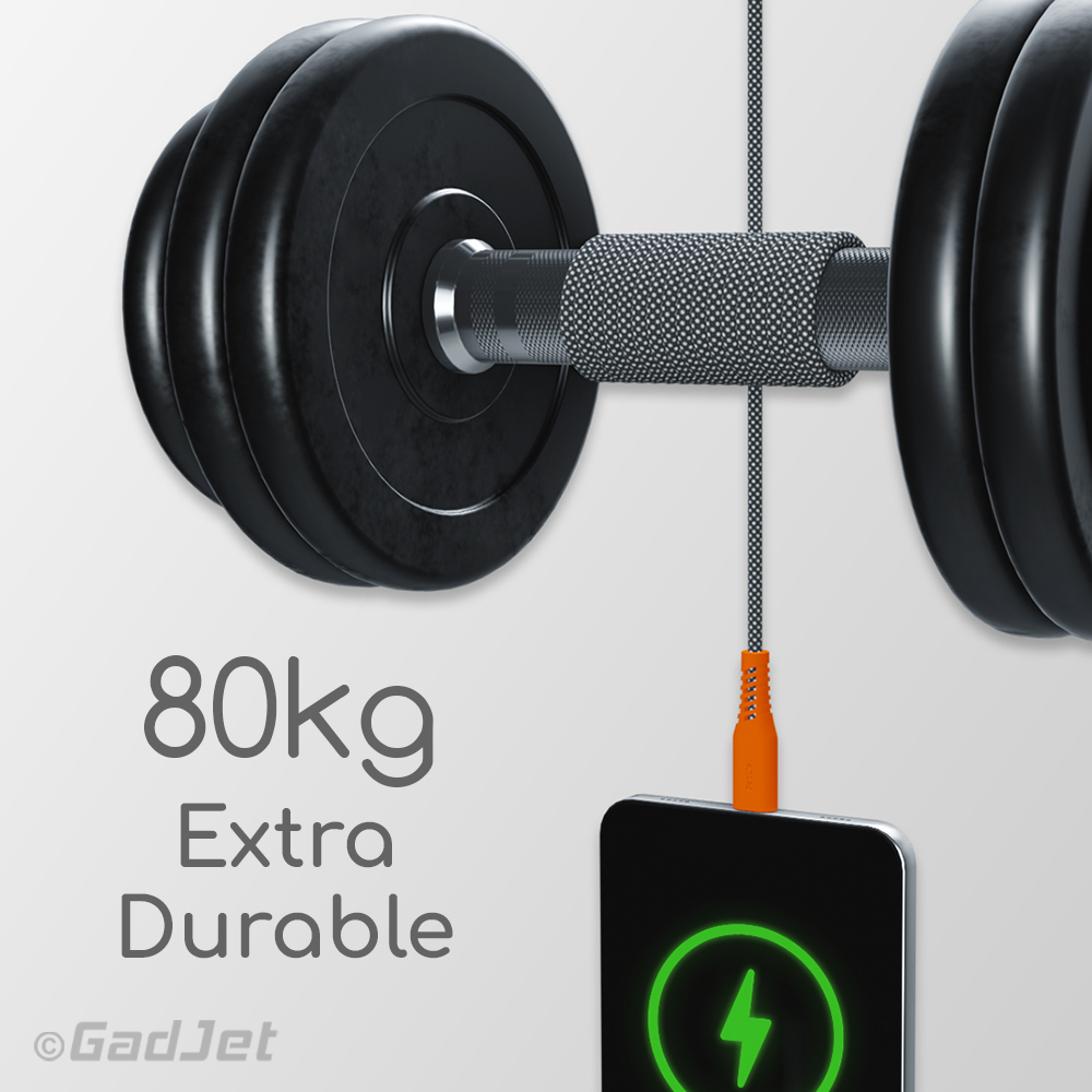 Designed to withstand up to 80kg of force, the GadJet Rapid Lightning® Cable offers incredible durability, making it a reliable companion for demanding tasks.