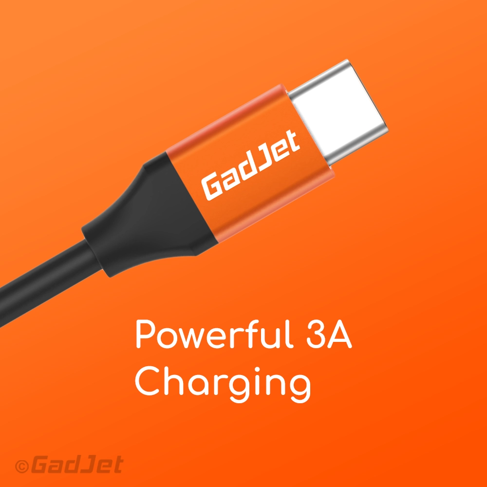 The GadJet USB-C Charge & Sync Cable delivers powerful 3A charging, giving your devices a quick and reliable boost whenever you need it.