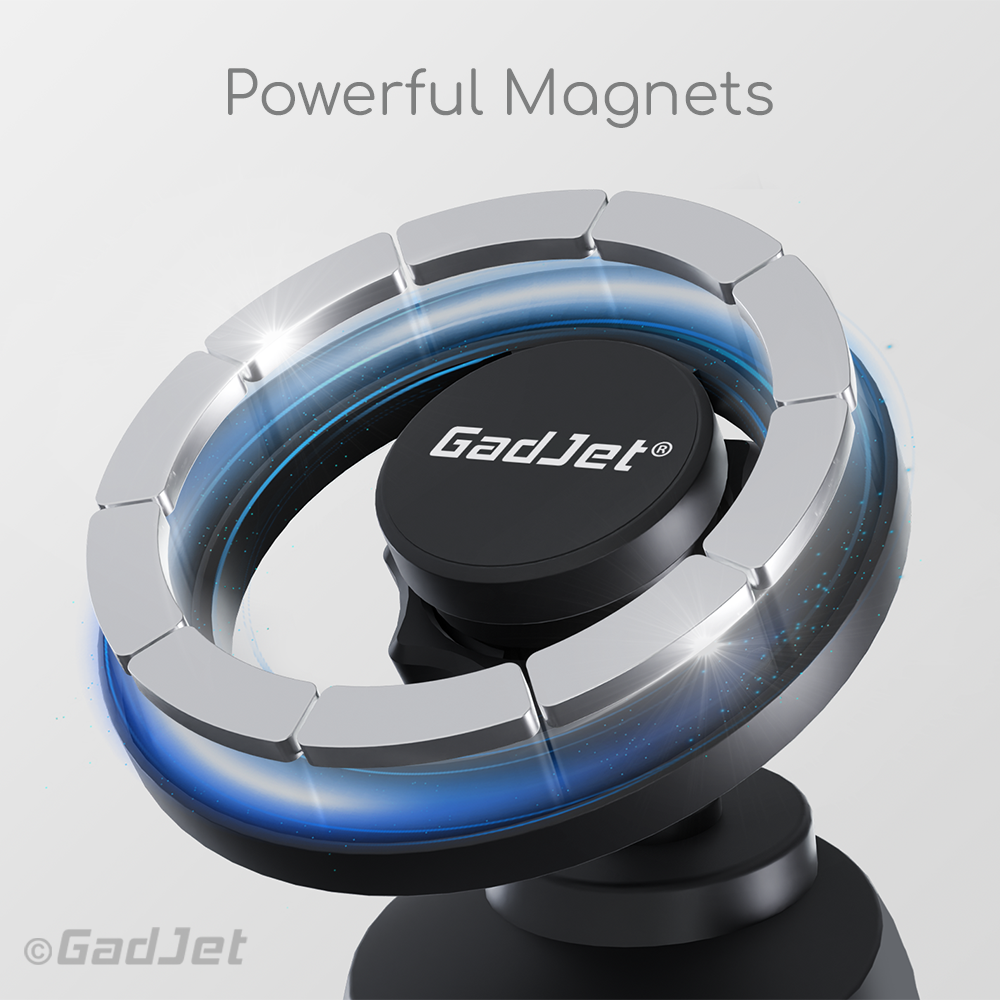 The GadJet MagJet Hook Clip Vent Phone Holder is equipped with powerful magnets for a secure hold on your smartphone. These strong magnets ensure your device stays in place, even on bumpy roads.