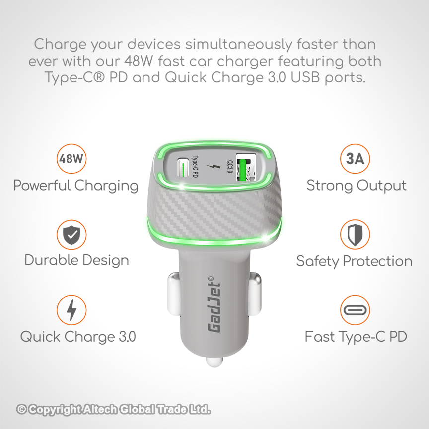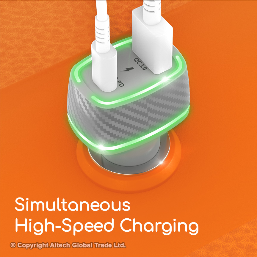 The charger is great. Charges fast. Exellent car charger. Now am able to charge two phones together quickly.